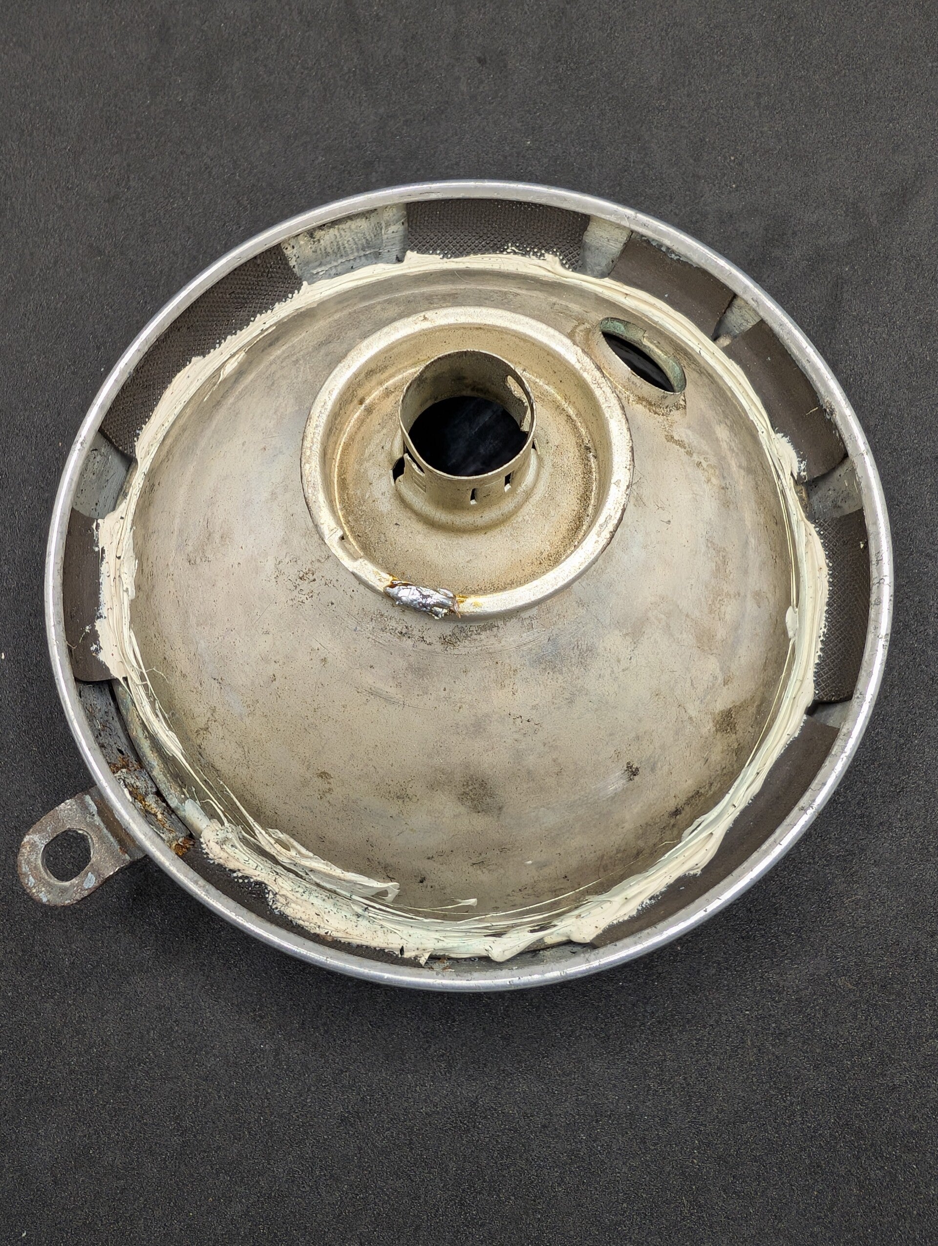 Hasag MT 130 koplamp voor de DKW RT 125 en NZ 350. Het verschil met de koplamp van de DKW RT 100 is dat deze koplamp wordt bevestigd met bouten in plaats van moeren.
