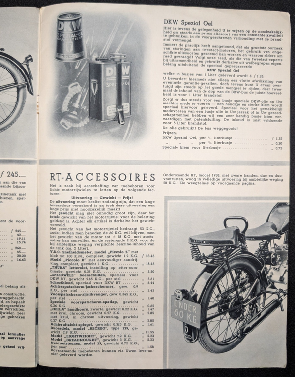 DKW RT-3PK Dutch brochure 1938 (original). No missing pages or defects. This brochure is issued by the Dutch importer of DKW, called Stokvis.