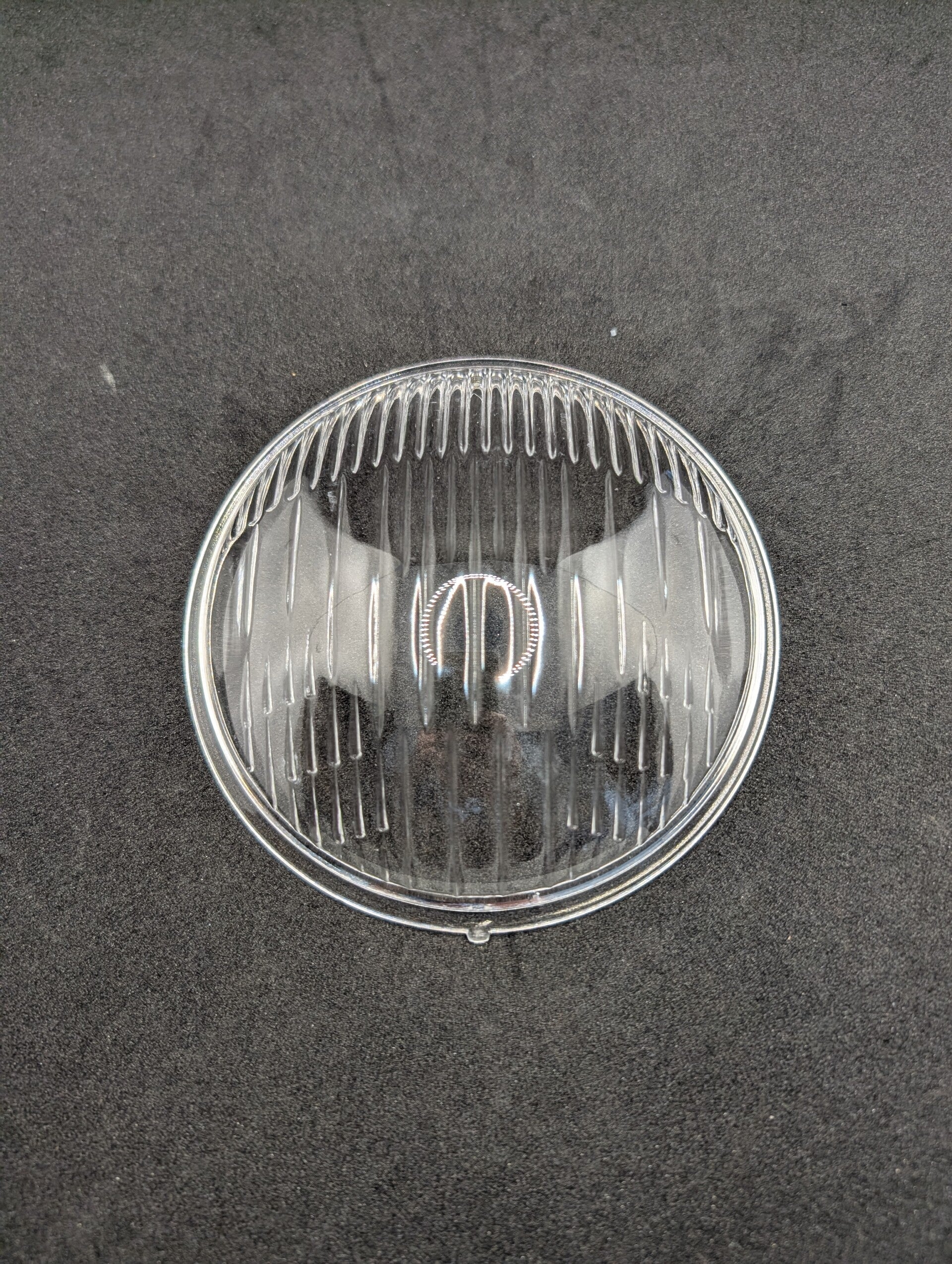 Headlamp lens for the Hasag MT 130 lamp (130mm). Suitable for DKW RT 100, RT 125 and NZ 350 with these lamps. This is a beautiful reproduction where the curvature of the original Hasag glass is clearly visible.