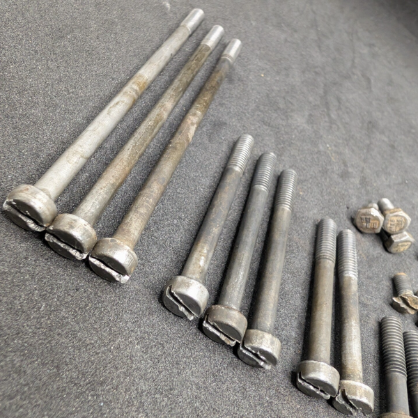 Complete original screw set for the entire RT100 engine block. Consists of 24 screws and Ribe bolts.