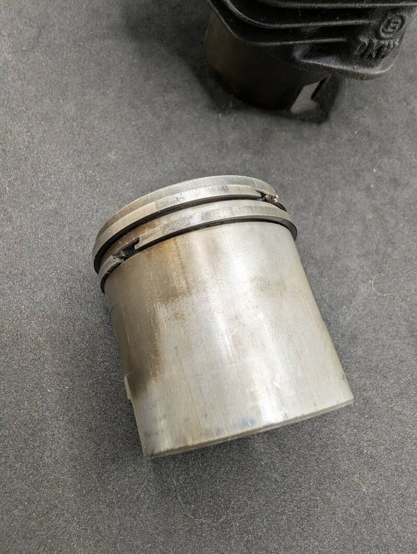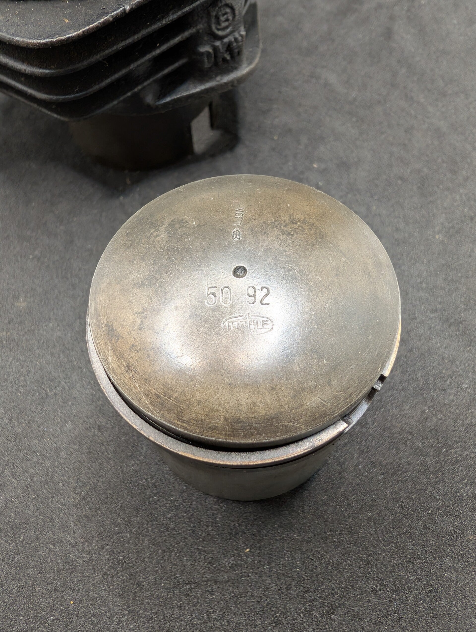 Honed cylinder + new piston set for DKW RT 100 (2.5 HP). This is a nice set with a good piston. 1934-1936.
